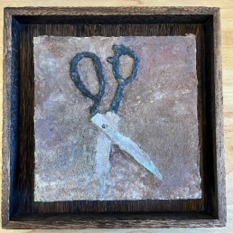 图表 11《日常物:剪刀》陈星霖 尺寸:20*20cm ;材料:纸浆、丙烯