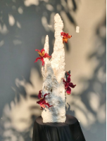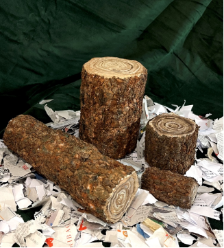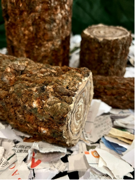 图表 13《倒述(树)》陈星霖 尺寸可变 ;材料:纸浆、丙烯、报纸、快递纸板