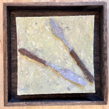 图表 10《日常物:两把刮刀》陈星霖 尺寸:20*20cm ;材料:纸浆、纸板、丙烯.