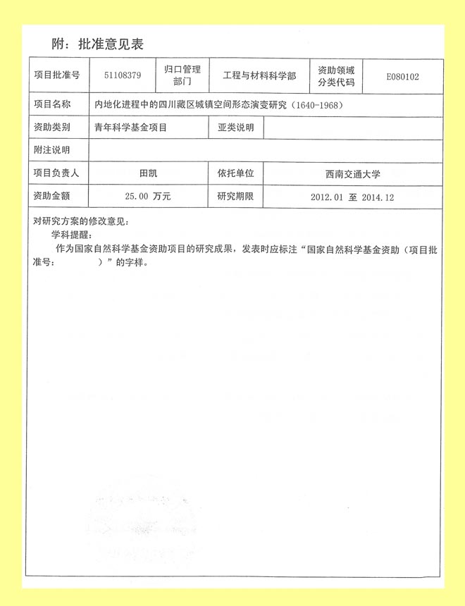 在2011年申报的国家自然科学基金项目中,布谷tv 张蓉、田凯、黄瑞三位老师各获批准青年基金项目一项。目前,布谷tv 在研的国家自然科学基金项目已达8项,其中面上项目3项,青年基金项目5项,在全国建筑学科居前列位置。