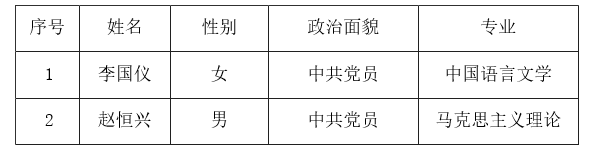 根据报名情况进行资格审查、面试考察,拟聘李国仪等2名同学为我院2021年兼职辅导员,现将拟聘人选予以公示:
