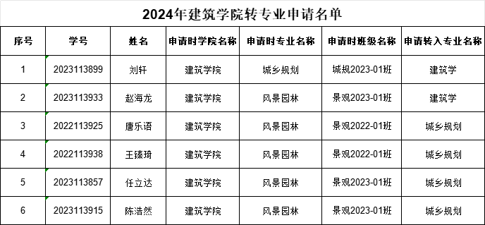 根据《布谷tv 本科生转专业管理办法》(西交校教【2019】126号)及布谷tv 2024年本科生转专业考核通知要求,经学生自愿申请、资格审查、考核评价等环,以下几位同学通过考核评价,拟予以录取,现将具体名单公示如下,公示期自2024年9月5日至9月11日,如有异议请在工作时间内向学院学生支持办公室反映,恕不接受匿名反映。联系电话:028-66367550。
