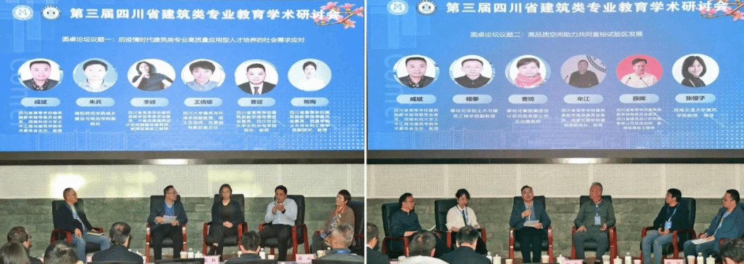 在各专家学者的精彩分享后,第四阶段的会议由两场精彩纷呈的圆桌论坛构成,参会代表就近时代建筑类专业人才培养和共同富裕试验区发展相关内容展开友好讨论。