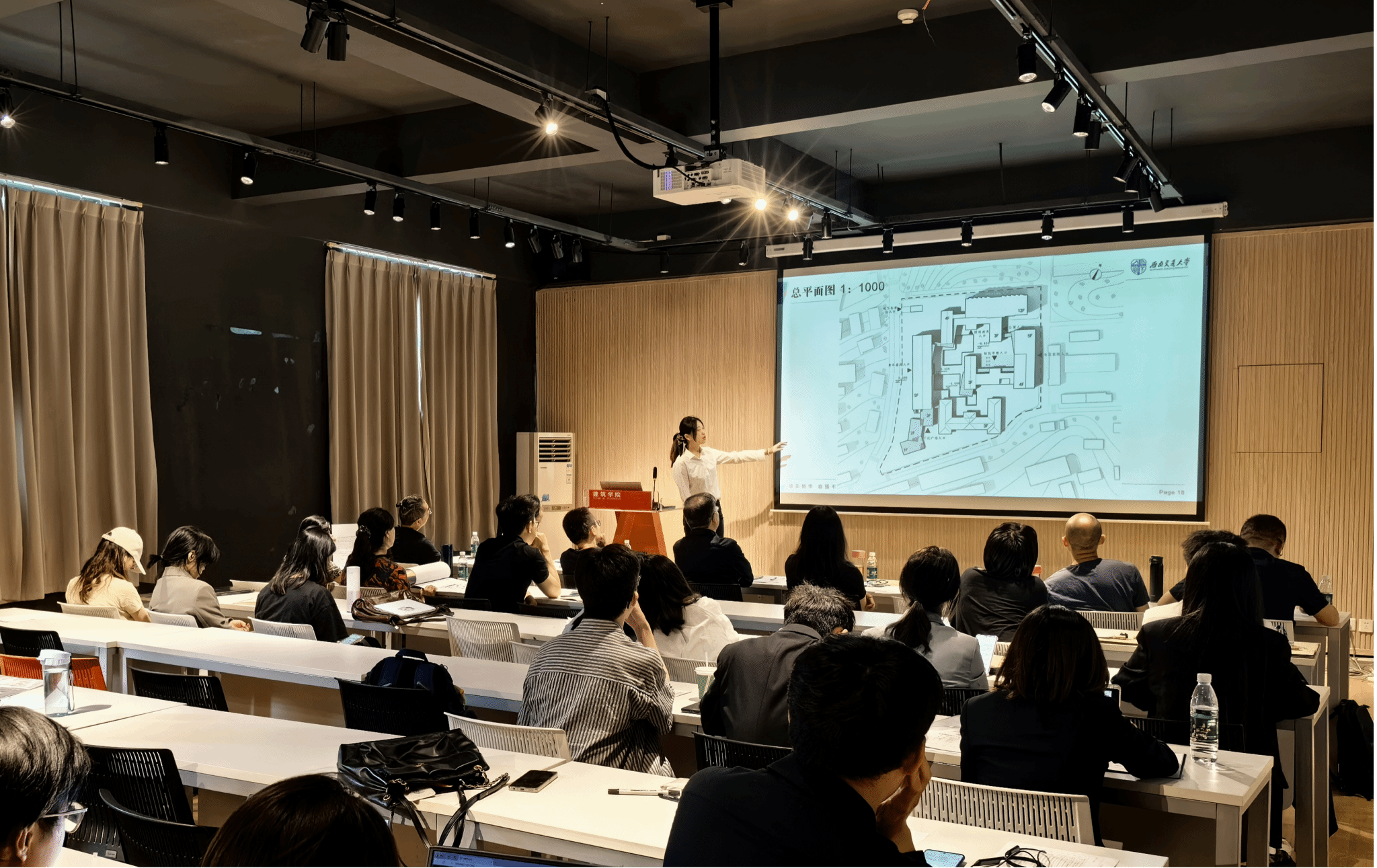 答辩委员会组长由学院执行院长沈中伟教授担任,遴选相关专业教师代表担任答辩委员,校教学督导委员会委员崔珩教授督导答辩工作,答辩委员会仔细听取了毕业生设计陈述、评审了设计展图,提出了具有理论深度与实践指导的问题与建议。2024届本科毕业年级师生代表观摩答辩。