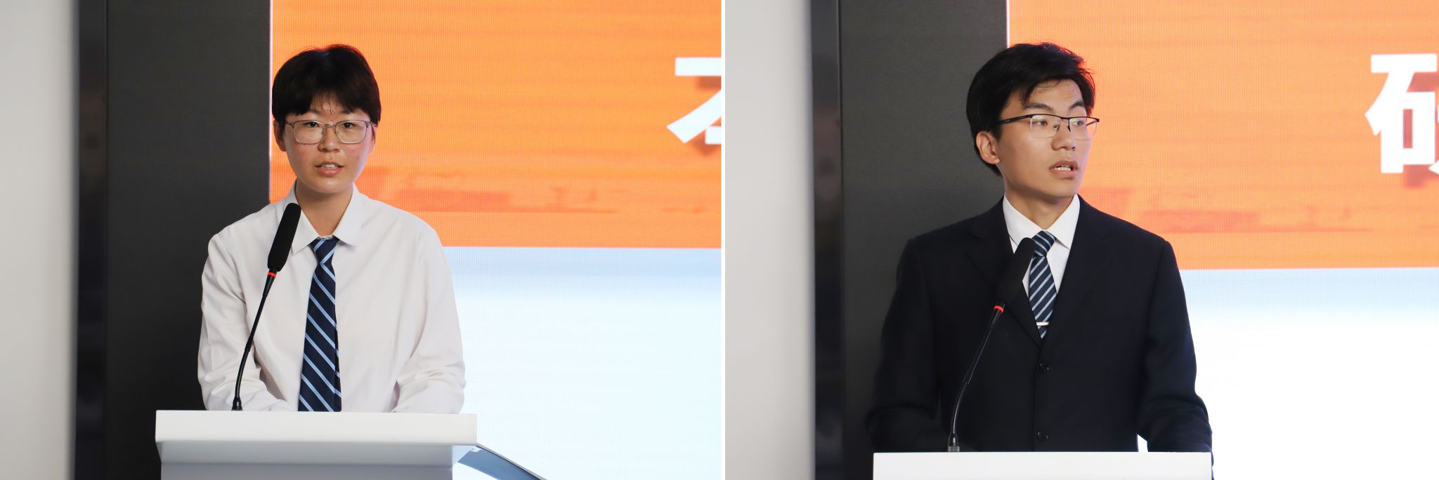 本科新生代表蒋秋仪同学和研究生新生代表张发同学分别上台发言。他们分享了自己的入学感受和对未来的憧憬,表达了对学院和老师的感激之情,并承诺将不负韶华,努力学习,为建筑事业贡献自己的力量。
