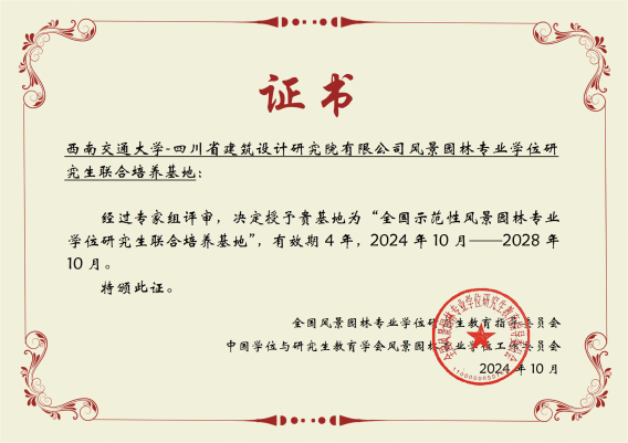 -四川省建筑设计研究院有限公司风景园林专业学位研究生联合培养基地”分获新增与复核通过!至此全校拥有此类研究生联合培养基地达到3个。