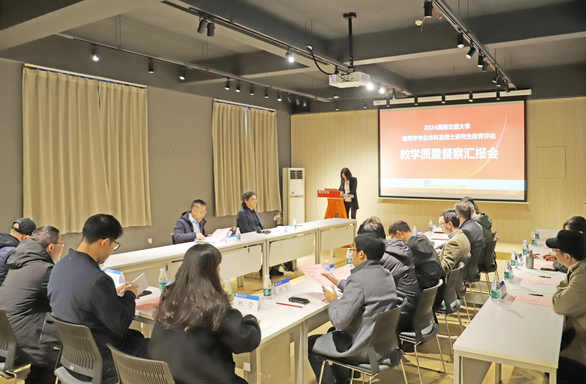 副院长杨青娟代表学院向专家们做建筑学专业本科及硕士研究生教育自评汇报,汇报后对督查专家的提问进行了认真答复。随后督察专家与教师代表进行了交流。