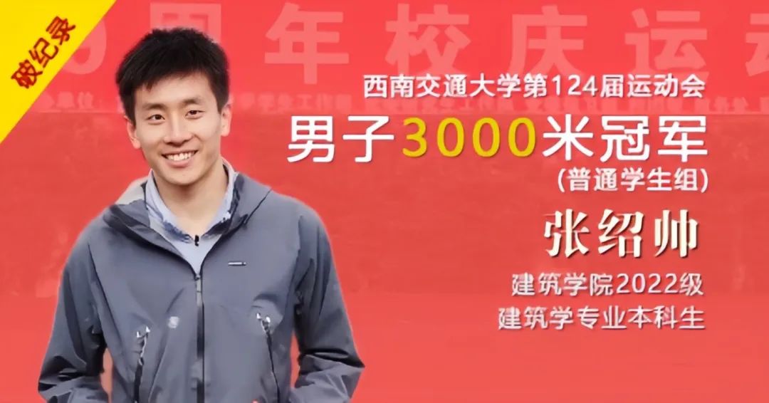 2022级建筑学专业本科生张绍帅在获得了男子3000米冠军的同时,以9分36秒13的成绩,刷新校运会男子3000米(普通学生组)尘封20年的纪录,将原纪录提升了近10秒,成为了布谷tv