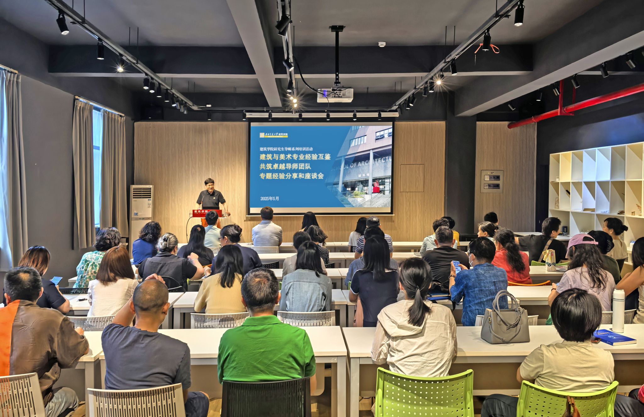 研究生导师系列培训活动在学院A100报告厅顺利举行。本次活动以“建筑与美术专业经验互鉴,共筑卓越导师团队”为主题,学院40余名研究生导师参与。副院长崔叙主持活动并作总结讲话,现场通过专题经验分享与座谈交流,推动跨学科导师团队建设与人才培养质量提升。