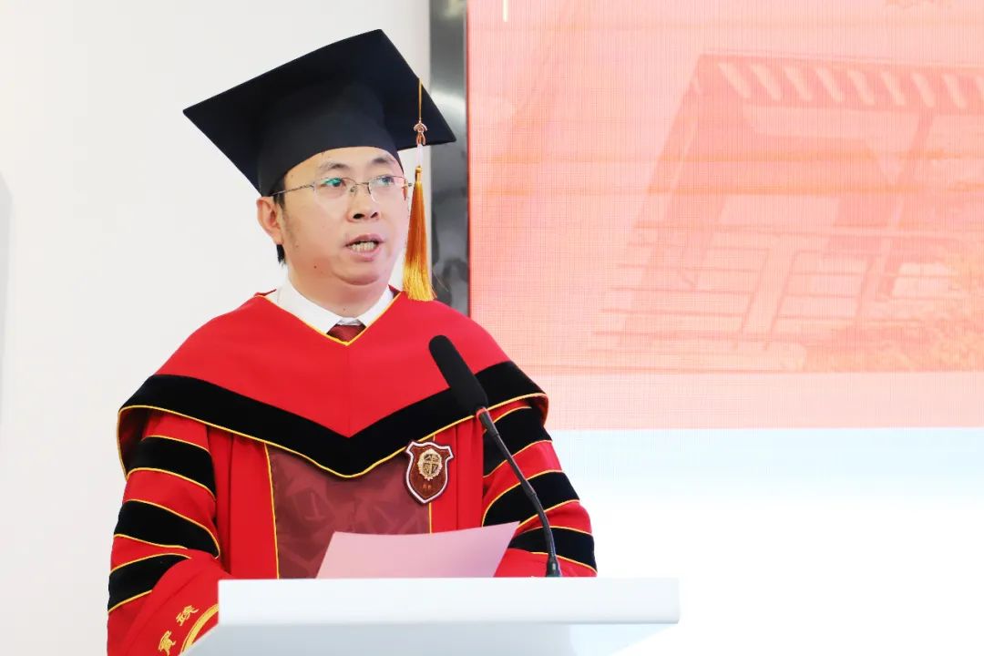 在毕业典礼的庄严时刻,院长沈中伟教授发表了鼓舞人心的讲话。他深情寄语即将展翅高飞的毕业生们,要以积极与自信人生态度,拥抱广阔世界。深刻阐述了社会实践与价值观塑造的紧密联系,指出个人的命运应与祖国的发展脉搏同频共振,通过社会实践的熔炉不断锤炼思维深度。他勉励毕业生们要以远大理想为航标,将个人追求融入国家发展大局,既要仰望星空,还要脚踏实地,鼓励学子们既要胸怀大志,又要从细微处着手,用实际行动践行理想。沈教授还回顾了毕业生们的成长历程与母校情怀,对学子们的未来充满了期待。最后,他鼓励毕业生们勇敢面对挑战,积极融入社会发展,在中国发展的洪流中勇立潮头,同时保持纯真善良,坚守道德底线,以精英的标准要求自己,不断追求卓越,用实际行动书写人生的华章。