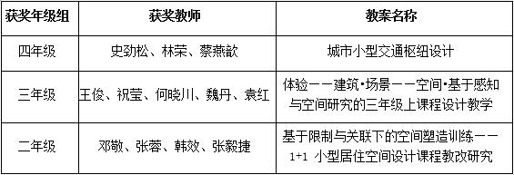 建筑学二、三、四年级的教案已在此项比赛中连续两年全部获奖。