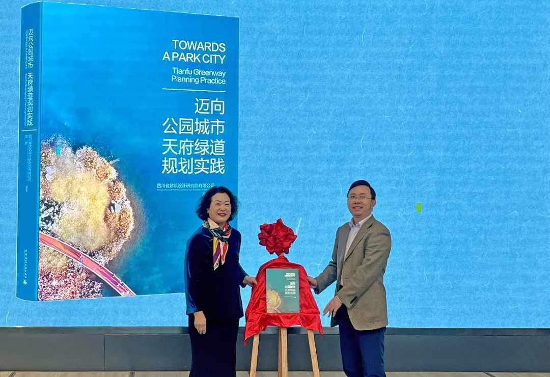 党委书记胡伟共同为公园城市建设成果——《迈向公园城市——天府绿道规划实践》新书揭幕。