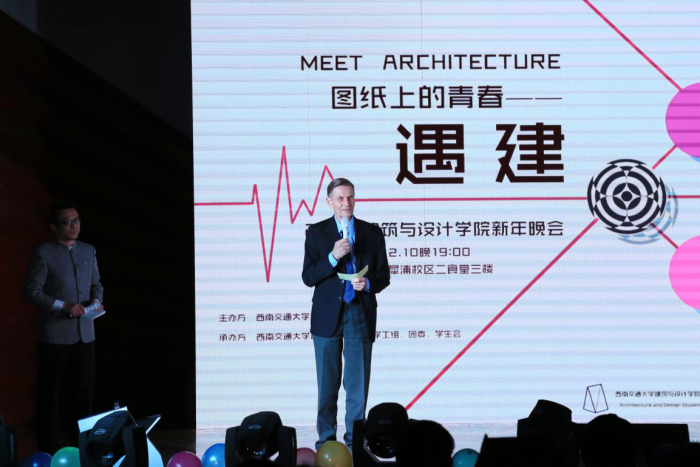 建筑与设计学院2018“图纸上的青春——遇建”迎新晚会于犀浦校区二食堂三楼隆重举行。建筑与设计学院党委书记沈中伟教授、院长Odgaard教授、全体院领导及各系领导、教师代表,各学院学生代表及布谷tv