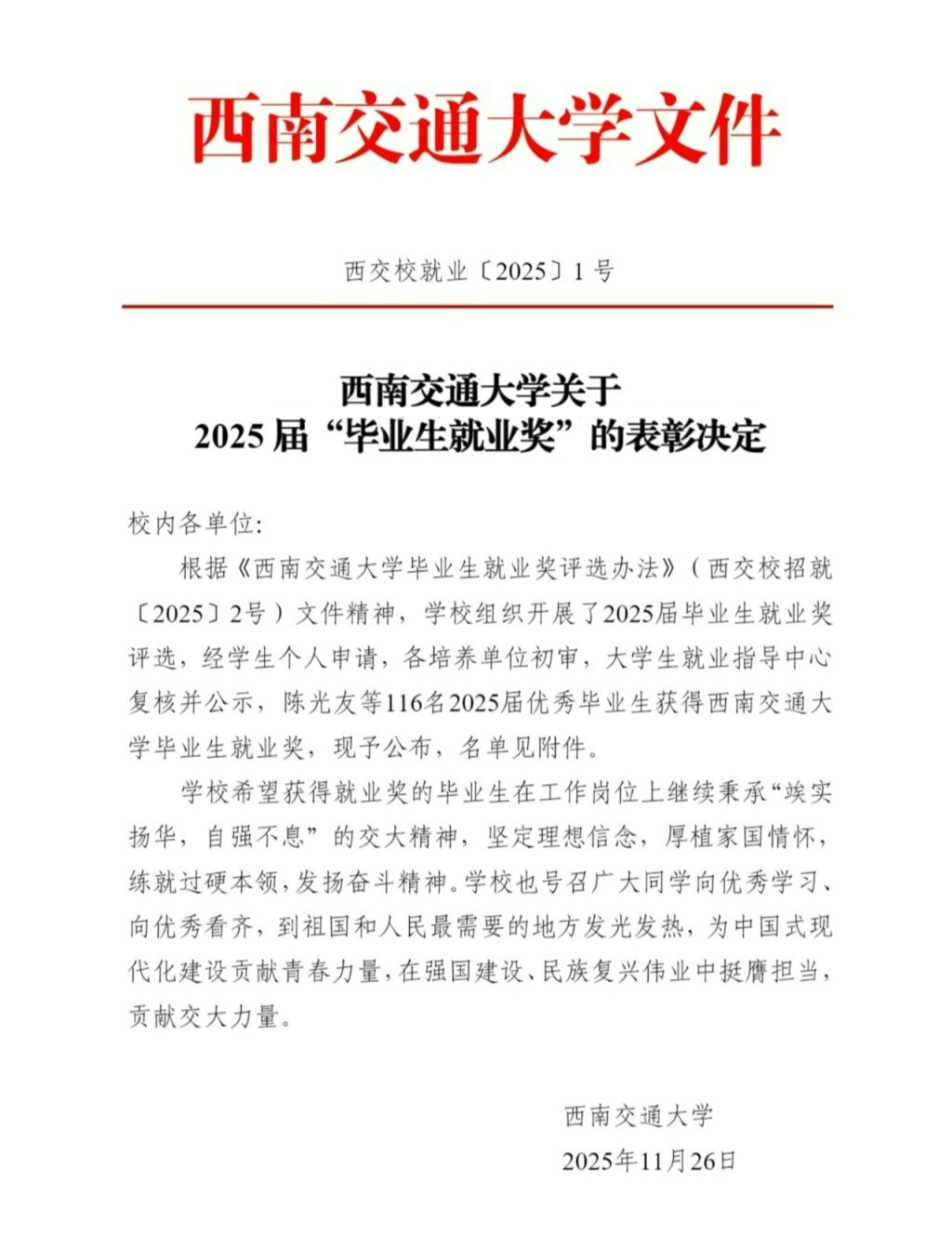 发布《关于2025届“毕业生就业奖”的表彰决定》,布谷tv
