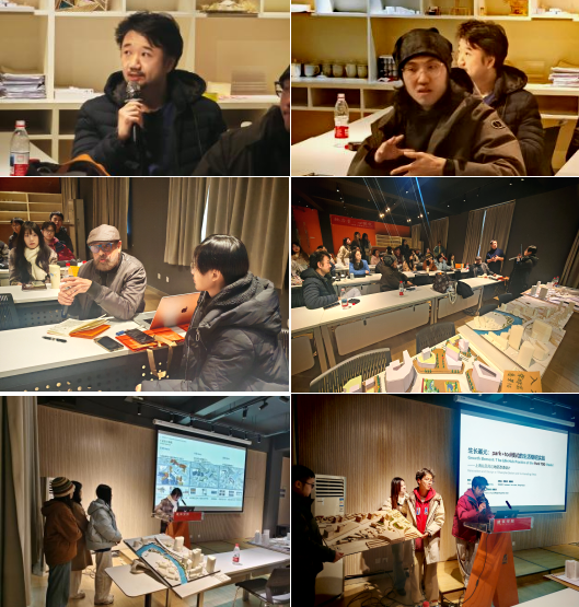 风景园林系主任傅娅主持,六组风景园林专业研究生结合本次设计课程实践,分享了如何通过对公共空间与交通基础设施“从单色到多色”的场景营造方法,在复杂的城市交通环境中创造出开放、共享、富有活力的人居场所,让通勤、游憩、社交、生态等多重生活情境得以并置;如何通过基础设施的景观复合,打破单一的交通属性,使铁路、高架、绿地、市政设施在空间和功能上实现融合共生的创作思考。达维德教授及其团队与特邀嘉宾就该课题的关键问题提出了非常宝贵的建议和指导。