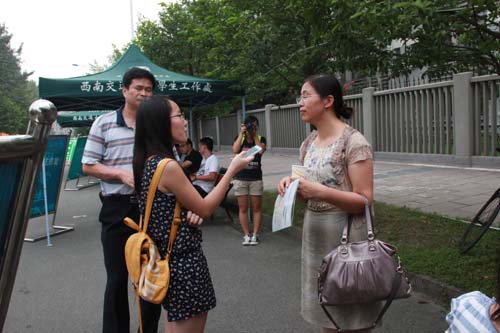 由于今天是报到的第一天,前来报到的同学并不是太多,但迎新点的同学并没有丝毫懈怠,仍然耐心的等待着每一个前来报到的新同学。
