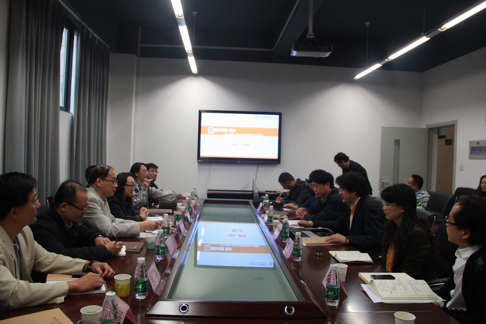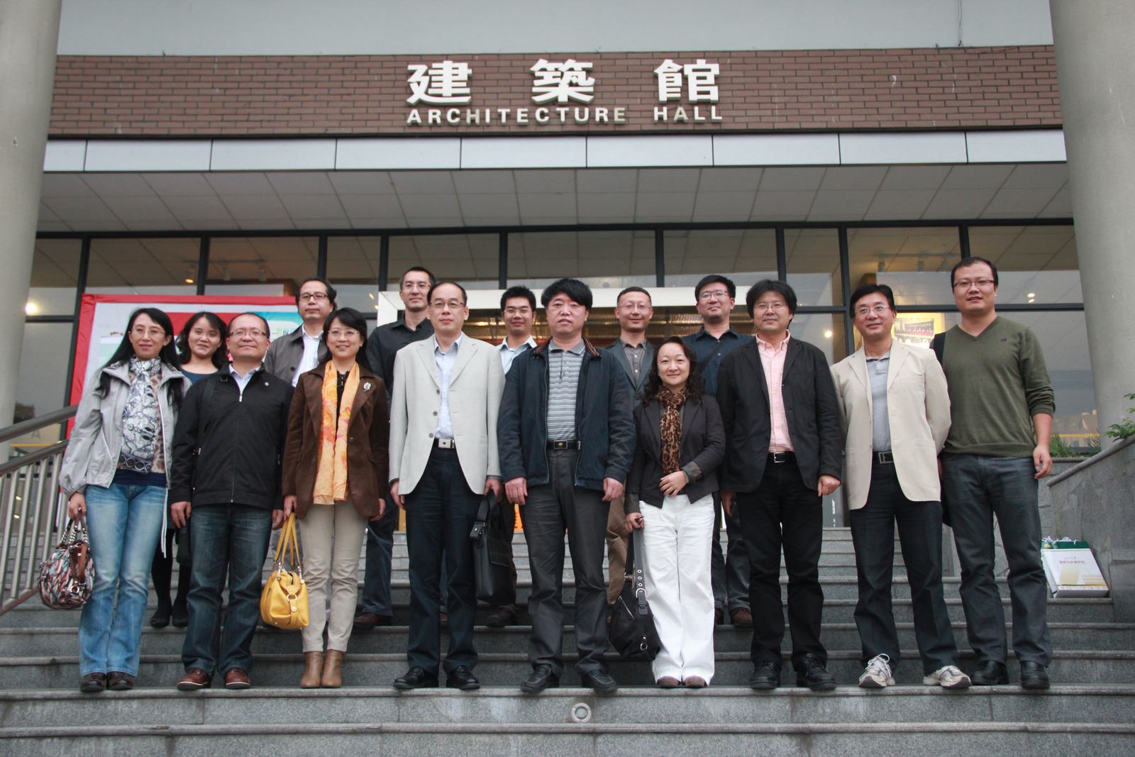 的发展思路站得高,看得远,在联合毕业设计中带动了广州大学规划系的同学取得了更好的成绩,希望今后能够有更多更好的合作。双方参会老师纷纷积极发言交流。沈中伟院长总结会议指出:广州大学建筑与城市规划学院的教学与科研工作具有很高水平,此次联合毕业设计激发了两校师生的积极性,开了个好头,取得了初步的成果,还应进一步提升;两院可以以联合毕业设计为基础,展开更过专业领域方面的合作与交流。沈院长特别指出,培育学生是生命线工程,学生工作中心的问题和动态,也希望两院能够有更多的交流。会议持续了三个小时,在热烈的氛围中结束。会后,双方交换了院校文化纪念品,并在建筑馆大台阶合影留念。