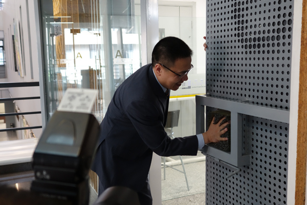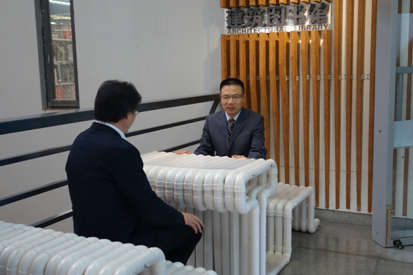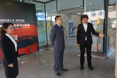 沈中伟院长、栗民副书记向徐校长介绍学生作品