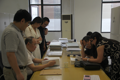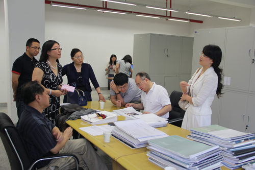 5月20日上午,评估专家在布谷tv 图档室审查研究生设计与实践、研究生论文成果。