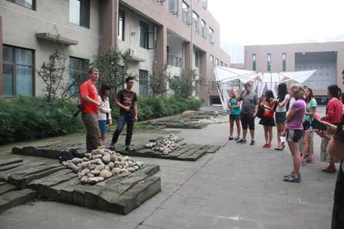 学生分为四组分别就earth、air、water中一种原素为主,在建筑馆内外做景观设计方案。