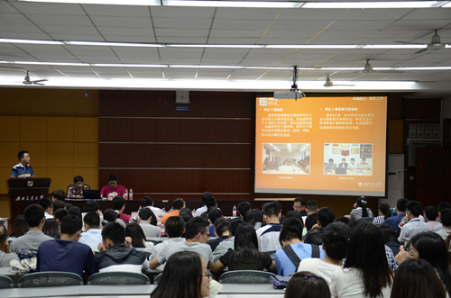 学子独特的创造能力,激发起在场观众的好奇心,现场发出一阵阵赞叹之声。紧接着,杨俊涛同学向大家介绍了研会以党的“群众路线”为主题展开的各项服务活动,充分说明布谷tv