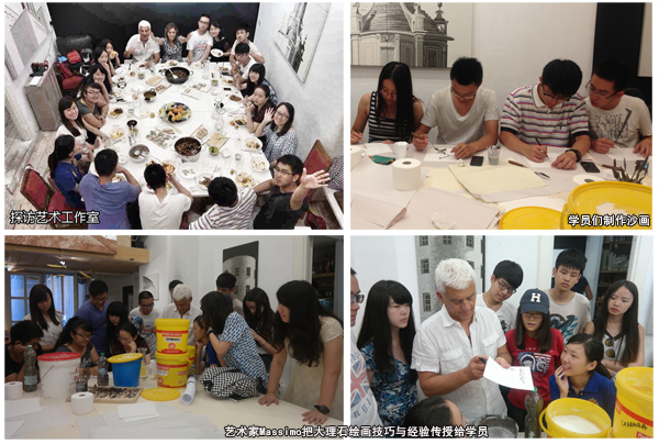每天的学习,学员们学习两种设计创意表达方法。一种是罗马设计师的基础——身体测绘。放弃通常设计教育中的尺规测绘,罗马艺术系教授教大家用自己的脚步和最简单的铅笔(步测法)来绘制出罗马街道、广场或建筑的平面图、立面图和剖面图。通过这种艺术的感性认知方式,大家增强了自身对空间的敏感度。最后像艺术家一样,通过绘图将自己的所见、所感表达出来。另外一种方法则是细节绘画,仔细观察是发现细节的方法。观察是一种复杂的艺术,真实感、光、材质、间距、视觉分组、视觉构成……提高了大家的观察力。这种方法将让同学们了解到千百年来罗马建筑师一直探讨的问题:如何保持建筑的与众不同,又能够天衣无缝地与环境融为一体。细节绘画与身体测绘一起告诉学员们,建筑和所有艺术一样,是可以睁大眼睛仔细分析的,又是可以闭上眼睛忘情感知的。