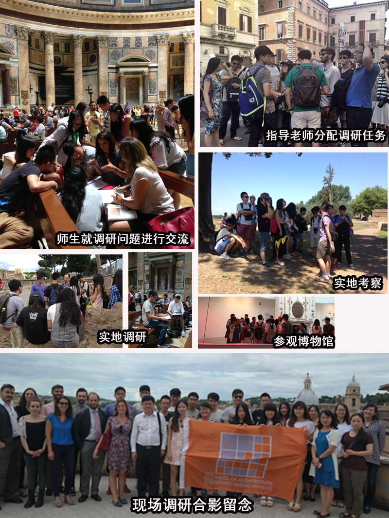 栗民副书记亲自带队,关心同学们的学习、生活,做好同学们的思想工作,并针对各种变化,随时与对方学校和相关部门协调沟通,保证了项目的顺利完成。参加游学活动的全体同学,不畏疲劳,谦虚认真,高质量地完成了交流学习项目,充分体现了交大学生严谨勤奋的优良传统,展示了建筑学子的创意和风采。16天的罗马之行,充分锻炼和展示了同学们的专业技能,提高了国际交流能力,更与参与项目的意大利师生结下了宝贵的友谊。之后,学院将举办“ITAD”访学项目摄影展及交流沙龙,中意双方教师将进一步指导同学们在罗马的设计作业参加中国建筑院校境外交流学生优秀作业展 。