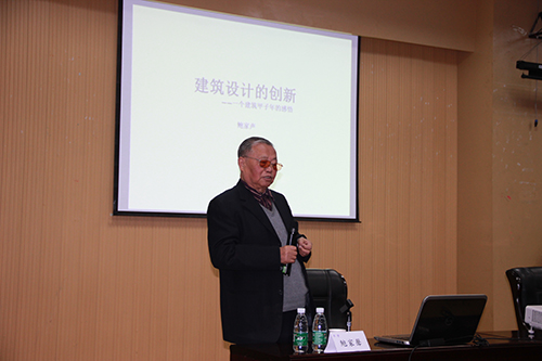 院长沈中伟教授向大家简要介绍了鲍教授的学术背景并对鲍教授的到来表示热烈的欢迎。随后,鲍教授从建筑的创新必要性和重要性、建筑创新的现实性和迫切性、建筑创新的龙头——建筑创作、创作核心——建筑空间组织模式的创新、建筑空间组织模式的创新探索五个方面结合空间组织模式、研究模式进行了深入的讲解。鲍教授讲到:建筑设计≠工程设计,建筑设计是高度综合的系统工程——综合创造的过程,并用英文简写为大家分解设计的内涵(D=E+R、D——Design、E——Elments、R——Rules),为加深同学们对建筑的理解,增强学生对于不同类型建筑空间组合模式创新的探索,鲍教授又用实例向大家介绍了高效空间工作室、图书馆、剧院、博物馆、校园建筑等作品,通过不同类型建筑空间的设计结合创新的探索进行再建设。在案例的介绍中,他结合了自己近六十年来对建筑的理解与思考,语重心长地告诫同学们,建筑不仅要满足形式上的美观,还要从实际使用出发,注重其社会功能价值,要做平时、自然、适宜、灵活可变的建筑。