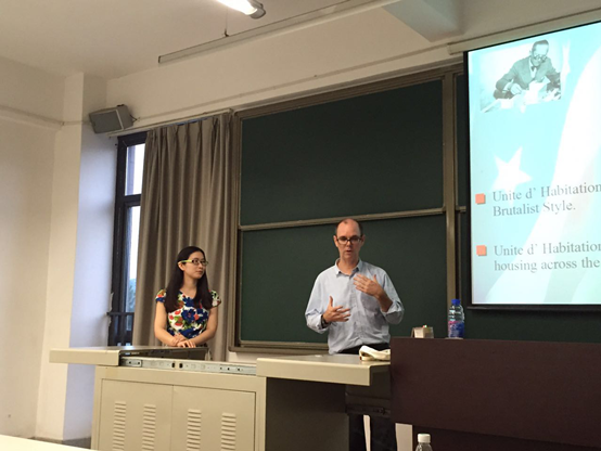 外籍专家,美国注册建筑师Nicholas S. Winter老师主讲,由朱元友老师主持,由博士生牛韶斐担任现场翻译。