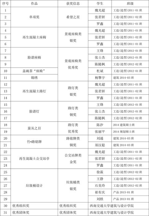 师生还获得“汽车设计类”金奖-《多地形自平衡担架车》与银奖《F-WING汽车设计》、“轨道交通设计类”银奖《成都地铁设计》、传统手工创新设计奖《竹材料汽车概念设计》以及8个优秀奖,可见硕果累累,体现了布谷tv