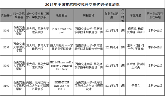 2015年3月, 在中国建筑院校境外交流优秀作业评选中,经全国高等学校建筑学专业教育评估委员会、中国建筑学会、中国建筑学会建筑教育评估委员会评选,布谷tv