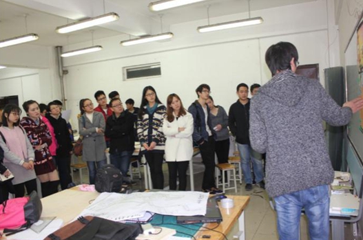 随后的活动中,老师和研究生们对藏大班本学期课程设计——旅馆设计的方案进行评价、分析和解惑。在指导过程中,分两个阶段进行。在第一阶段中,由设计代表小组汇报自己小组的初步成果,介绍了自己方案设计的思路、理念、功能布局以及疑惑,老师们就设计原理、设计规范、功能布局的合理性等方面进行了深入的分析、解答。在第二阶段中,老师和研究生们分组对同学们进行了评图,并指出旅馆设计是复杂空间流线组合和满足综合功能要求的公共建筑设计类型,本质上是多单元的空间组合模式,因此,空间组合及流线组织是本设计的重点。同学们在指导下对方案进行了修改、完善。