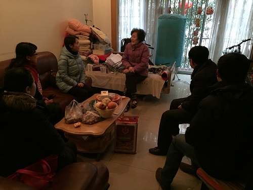 1月25日下午,学院领导班子先后来到退休老教师陈大乾、钱宜菊的家中,与两位老教师进行了交流。沈中伟院长亲切询问了他们的身体健康状况和日常生活,向老教师简要介绍了学院的发展和取得的成就。沈院长谈到:学院的发展离不开各位老教师的努力,感谢各位老师对学院工作的大力支持,目前学院正值发展改革的关键时期,希望老教师继续关心学院发展,为学院发展出谋划策。栗民副书记谈到:各位老教师虽已退休,但是在学院的青年教师培养、校友工作、教学及科研工作中仍然给予学院大力的支持和帮助,感谢各位老教师对学院做出的贡献。
