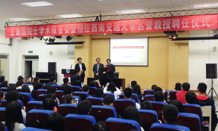 建筑与设计学院报告厅举行。学校党委书记王顺洪教授出席了报告会及聘任仪式,为王建国院士颁发聘书并为王院士佩戴校徽。仪式由建筑与设计学院院长沈中伟教授主持。