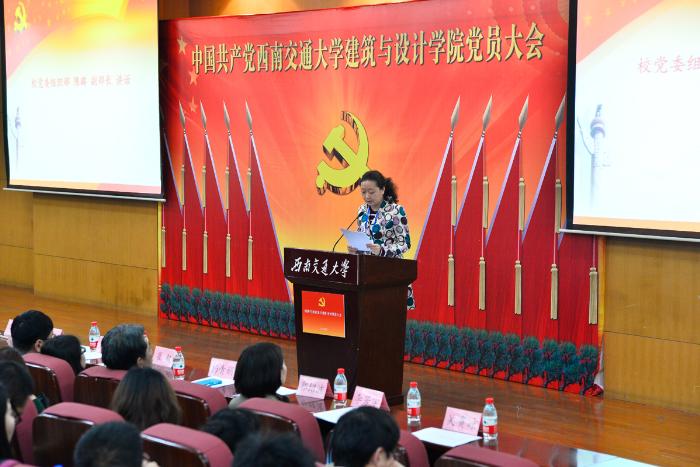 建筑与设计学院党员大会在图书馆一号报告厅隆重举行。校党委组织部副部长陈璐同志,学院院长沈中伟同志、主持学院党委工作的党委副书记栗民同志等院领导出席本次大会。同时参加大会的还有:在校师生党员、学院民主党派、无党派人士,离退休教师、非党员学生代表等。大会由院长沈中伟主持。