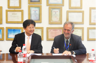 ,会议由沈中伟院长主持,党委栗民书记等及教师代表参与了会面。双方互相介绍了各自基本情况,并就联合办学、师生交流、联合科研等方面进行了友好而真诚的探讨。进过沟通和探讨,双方就深入开展合作达成了一致意见并签订了合作备忘录。