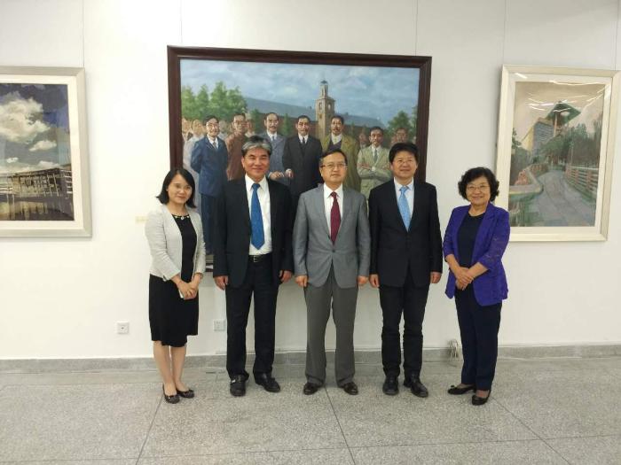洪毅教授根据校史记载专门创作的两幅油画作品《竢实扬华之一、之二》,表现了1912年9月,孙中山先生视察唐山路矿学堂;以及1958年9月,刘少奇、周恩来视察唐山铁道学院的历史画面。作品彰显了交通大学源远流长的光荣历史。