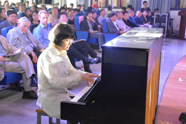师生的青春与活力,整场晚会内容精彩丰富,歌颂今日辉煌成就,祝福未来多彩篇章。其中,学生表演民族舞《痒》缠绵多姿;国标舞表演风情十足;藏族歌曲《扎西德勒》热情奔放,表演同学还为嘉宾献上圣洁的哈达。此外,老师们的表演更是掌声不断。学工组带来的歌曲串烧开启了老师表演的序幕;美术系茱莉亚老师用优美的舞姿表达了《红豆相思情》;风景园林系师生用歌声祝愿《明天会更好》;城乡规划系的老师在音符中带我们回到《童年》;产品设计系李科平老师的钢琴声悠扬婉转;建筑系张宇老师多才多艺,大提琴、美声演唱都不在话下。建筑系教师的歌曲串烧造就了整场晚会的高潮,从《同桌的你》到《喜欢你》深情款款,从《敖包相会》到《沧海一声笑》韵味悠悠。艺术设计系缪根生老师手工制作的民族服装以舞台走秀的方式呈现,传统工艺展现出了时尚酷炫的光彩,强烈的视觉和听觉冲击美不胜收。晚会最后,学院领导与“橙”合唱团合唱一曲《光阴的故事》,“图纸上的青春”改变了每一个人,“光阴的故事”铸就了学院今日的辉煌。