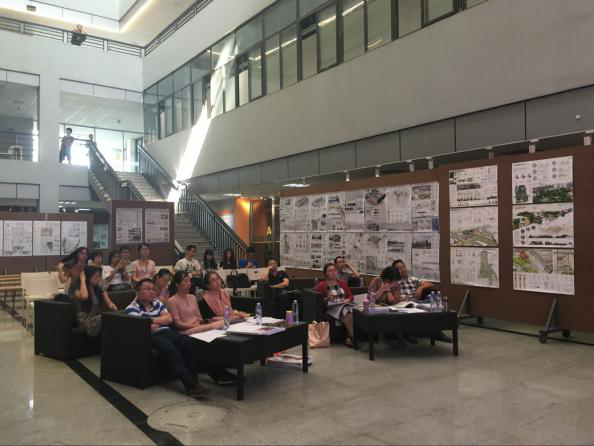 汇报中,各小组同学分别从规划、景观和建筑三个角度进行方案的阐释,采用了定性、定量分析相结合的方法,通过二维图示和三维模型对现阶段的成果进行全方位、立体展示,部分小组还制作了视频展示,同时各小组考虑到方案结合实际,就经济性和实用性相兼顾的问题对方案的可行性进行了评价。