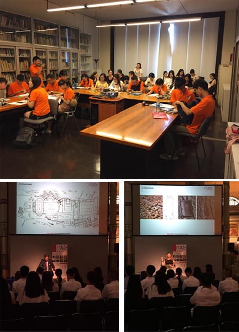 ,开始了理论课程学习阶段。Matteis教授为大家介绍了意大利ITAD暑期学校教学学习计划及课程安排,希望通过暑期学校项目让同学们学会分析罗马著名历史建筑中的公共空间。建筑师Federico de Matteis教授为大家带来了“Space & Body in Rome”专题讲座,希望同学们能够以建筑师的角度使问题具体化,同时要考虑使用者的心声并提出重构的解决方案。建筑师Simona Salvo教授以Transforming the Historic City为主题为大家讲解了罗马这座城市的历史演变,并让同学们对于贯穿罗马城市空间形态的“分层”概念有了初步的了解。