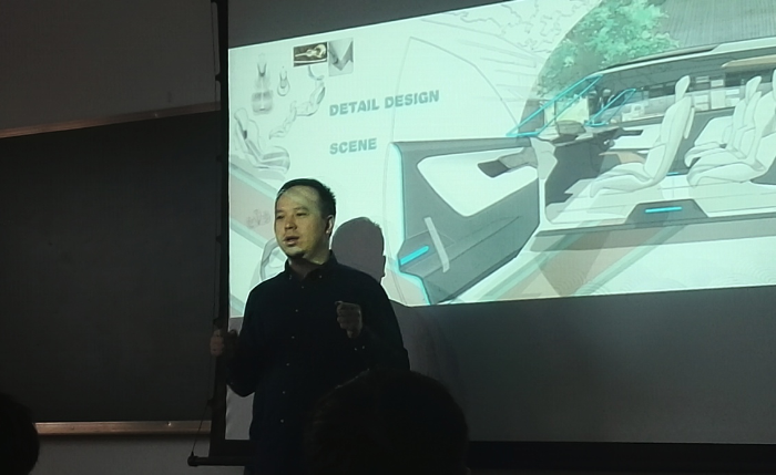 师生带来了“汽车整车设计流程和院校企业联合项目的案例分析”学术讲座。马骏毕业于著名的美国艺术中心设计学院(ACCD),主修交通工具设计,目前任职于美国通用汽车中国设计部、泛亚汽车技术中心。讲座由工业设计系董石羽副主任主持。