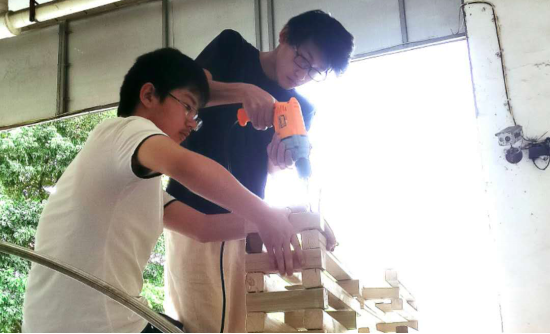 师生共同合作完成两组作品的搭建。