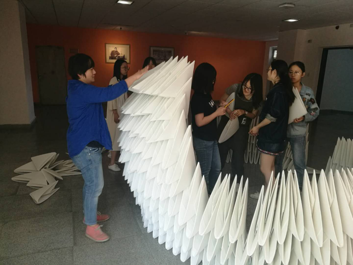 顺利启动,我校100多名同学及台北科技大学的6名同学在我校犀浦校区8号教学楼及浙园湖边草坪上搭建二十余个风格各异、极具创意的实体建构空间。