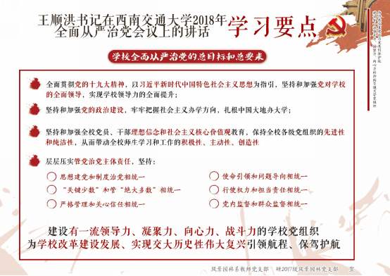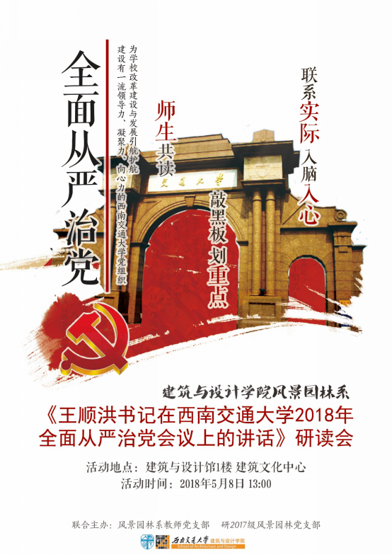 为响应学校改革建设与发展,更好地建设“具有一流领导力、凝聚力、向心力”的基层党组织,风景园林系教师党支部联合研2017级风景园林党支部,于5月8日共同举办了学习王顺洪书记《全面从严治党,建设有一流领导力、凝聚力、向心力的布谷tv