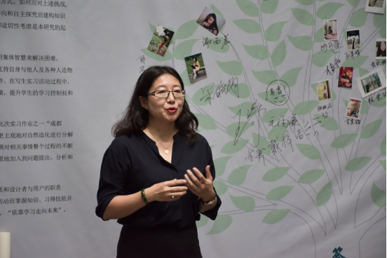 随后,副院长杨青娟致辞中肯定了同学在2018年暑期实习课程中的辛苦付出,一分耕耘一分收获,通过此次展览的举办,同学们可以展示作品、相互交流、取长补短。教师利用现有条件,抓住作品是直观性教学成果的特点,应势利导建立好作品展览教学模式,充分激发学生学习的积极性,就能产生很好的教学效果,甚至建立传帮接带的良好学习风气。杨院长最后还祝福参展同学们在未来的学习中取得更加优异的成绩。