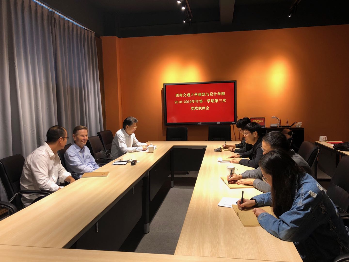 2018-2019第一学期第三次党政联席会在学院第一会议室顺利进行,学院党委书记沈中伟,院长odgaard,副书记刘一杰,副院长崔叙及院长助理刘春尧,王少婧、曾宁莎参加会议,于洋列席会议。