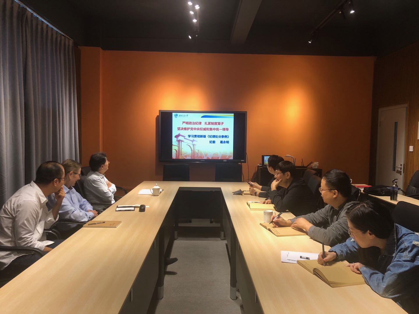 刘一杰副书记带领大家集中学新版《纪律处分条例》,其主要内容包括“一个思想、两个坚决拥护、三个重点、四个意识、四种形态、五处纪法衔接、六个从严、七个有之、八种典型违纪行为”,规定了10类违反党的纪律行为,新《条例》的修订标志着党的纪律规范和纪律处分进入科学化规范化阶段。要求做到守纪律、讲规范、知敬畏、存戒惧。刘书记强调各支部书记要认真学,要传达到支部各成员集中学习。沈中伟书记带领大家对新版《纪律处分条例》相关内容进行了讨论和深入学习。