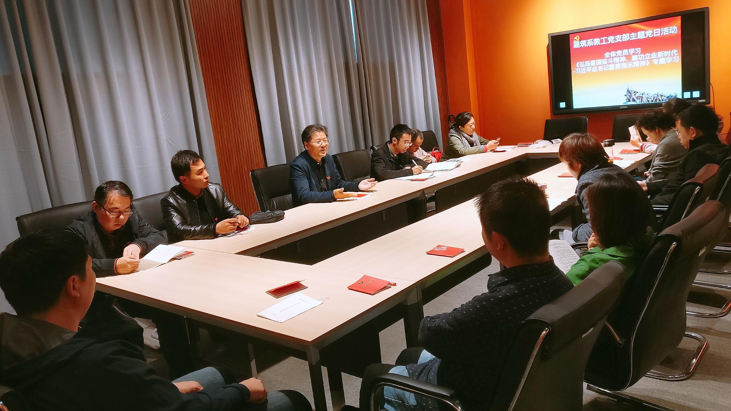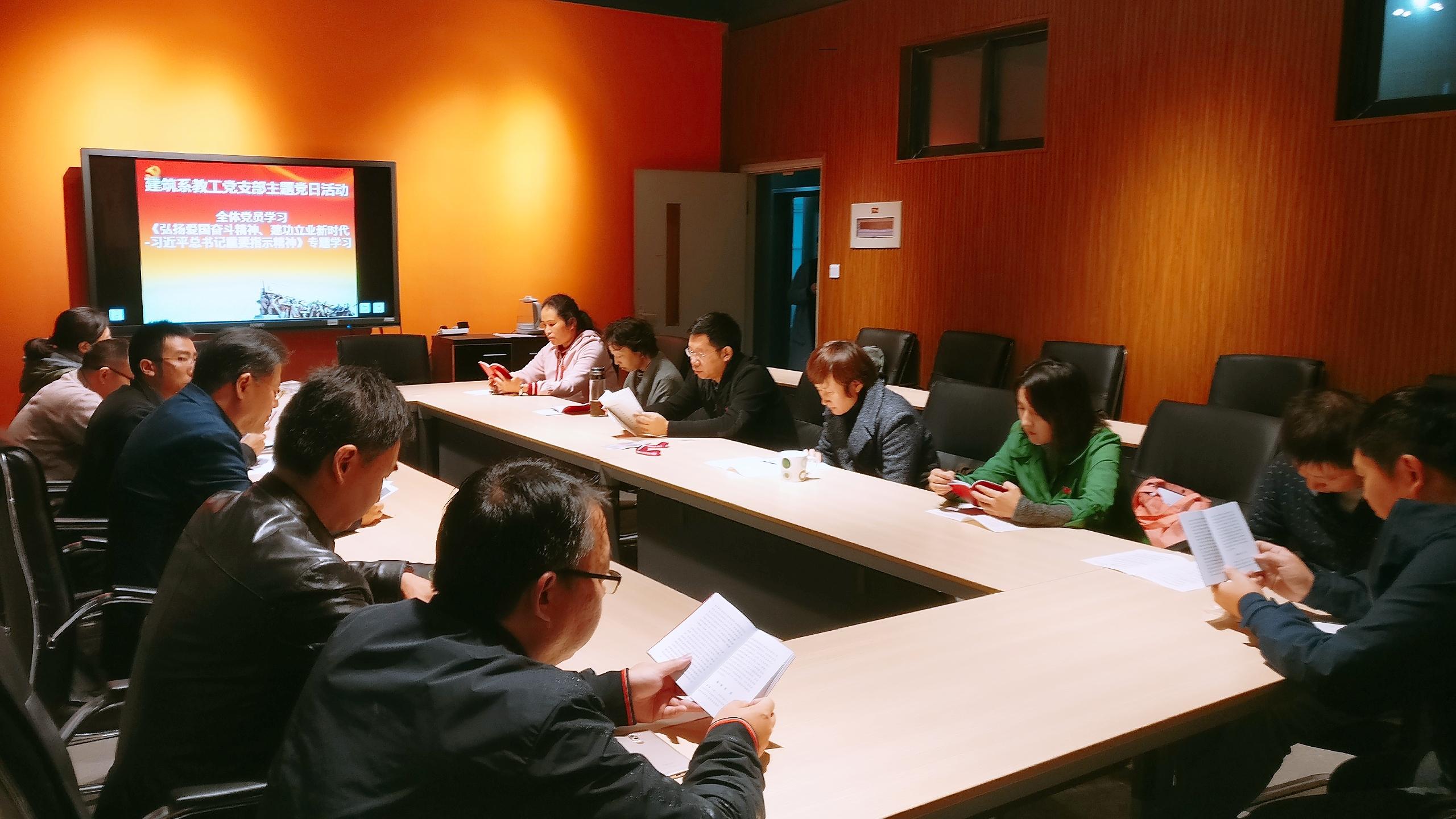 2018年10月18日,建筑与设计学院建筑系教工党支部在建筑系会议室召开支部会议,会议由党支部书记付飞同志主持。会议先对党章的第五章内容进行了学习,大家轮流朗读党章内容,对党章内容进行深入的理解,领会党章的要义。学习完党章之后,建筑与设计学院建筑系教工党支部开展《弘扬爱国奋斗精神、建功立业新时代——习近平总书记重要指示精神》专题学习:爱国奋斗,是中华民族生生不息代代相传的民族基因,是新时代高扬的主旋律;中国特色社会主义进入新时代,弘扬爱国奋斗精神具有特别重要的现实意义。大家认真学习习近平总书记重要讲话精神后,认为在中国特色社会主义新时代应自觉弘扬践行爱国奋斗精神,不忘初心、牢记使命,要增强“四个意识”,坚定“四个自信”,把教师们的个人理想自觉融入国家和学校发展事业中。此次会议还学习了习近平总书记在全国教育大会上关于“坚持中国特色社会主义教育发展道路,培养德智体美劳全面发展的社会主义建设者和接班人”的重要讲话。同时,会议传达中共布谷tv