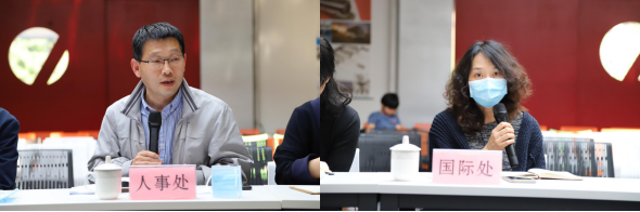 学院各分管领导和各系领导结合各自工作进行补充了发言和讨论。人事处副处长翟东海和国际处副处长陆霞针对大家提出的问题和想法进行政策解答和策略建议。