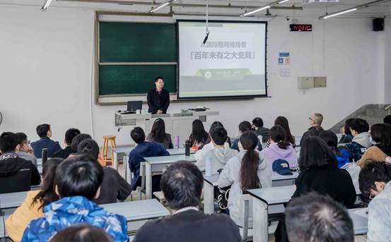 姚发明副校长阐释了习近平总书记提出“当前中国处于近代以来最好的发展时期,世界处于百年未有之大变局,两者同步交织、相互激荡”这一重大论断的背景,并从人类社会发展进程的角度,阐述了他对这一重大论断的理解。他从“深刻认识百年未有之大变局”、“大变局中机遇与挑战同生并存”、“大变局中的中国角色与中国担当”三部分为大家进行了生动的讲授。从国际力量对比之变、世界格局之变、科技革命之变、现代化发展模式之变,看到一个快速发展的中国、一个快速变化的中国、一个快步融入世界的中国、一个快步走向中华民族伟大复兴的中国梦。从大变局催生新的机遇、大变局充满风险挑战,他指出作为青年学子、青年党员,在这大变局中要把握好机遇,保持战略定力,坚定不移向前走,更要积极拥抱时代、把握好时代机遇、不辜负这个时代。从中国发展振兴是百年大变局的重要变化、中国的发展是大变局中的正能量,他强调要按照习近平总书记提出的增强战略思维、历史思维、辩证思维、创新思维和底线思维,打造人类命运共同体。